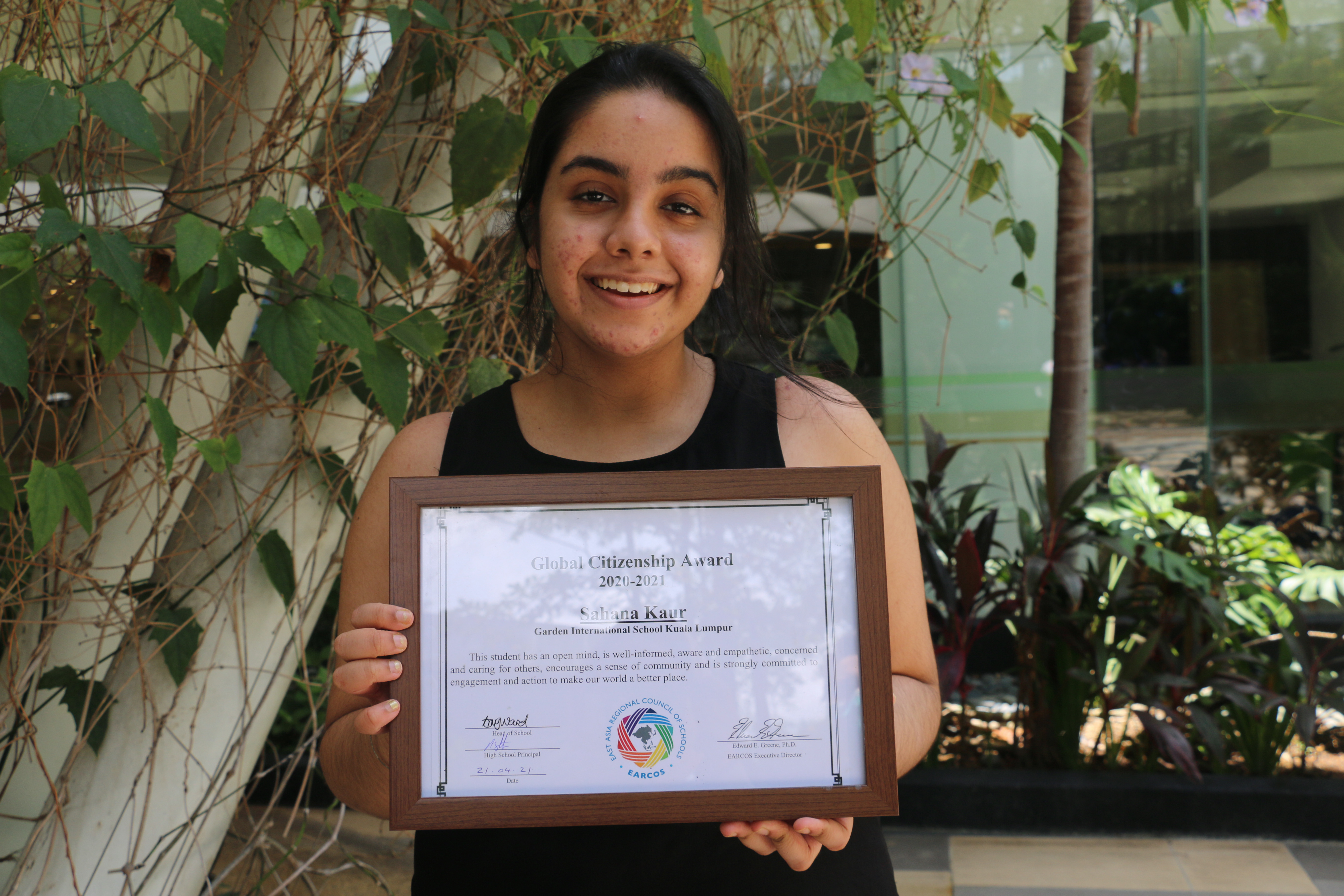 It is somewhat hard to believe that Sahana is just 16. She speaks articulately with the knowledge and passion of someone much older. In her role as Chair of Amnesty International, Malaysia (Youth), she has led on a number of initiatives to support those in need, standing up for the rights of the disenfranchised. It is therefore not surprising that she was recently awarded the incredibly prestigious Diana Award, a British based award that recognises young people between 9 and 25 years old who are active in social or humanitarian work as a way of continuing the legacy of Princess Diana. This is in addition to the EARCOS Global Citizenship Award which was presented to Sahana earlier this year.